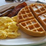 BRUNCH BUFFET scrambled eggs, bacon strips, sausage links, french toast, breakfast potatoes with onions & peppers, carved roast beef, danish, muffins and cakes.
